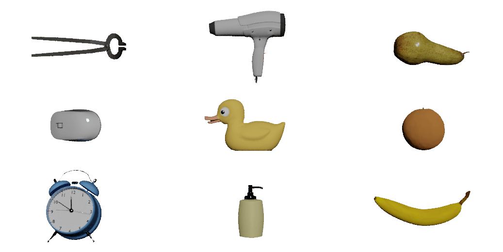 of 124 realistic 3-D household objects for VR-based testing, training,